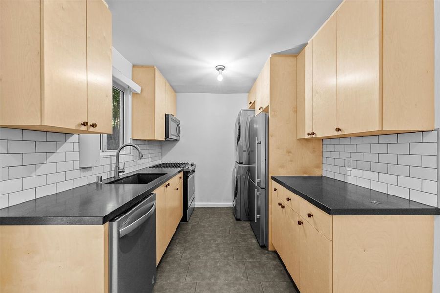 - Appliances: stove, refrigerator, microwave, dishwasher, washer, dryer