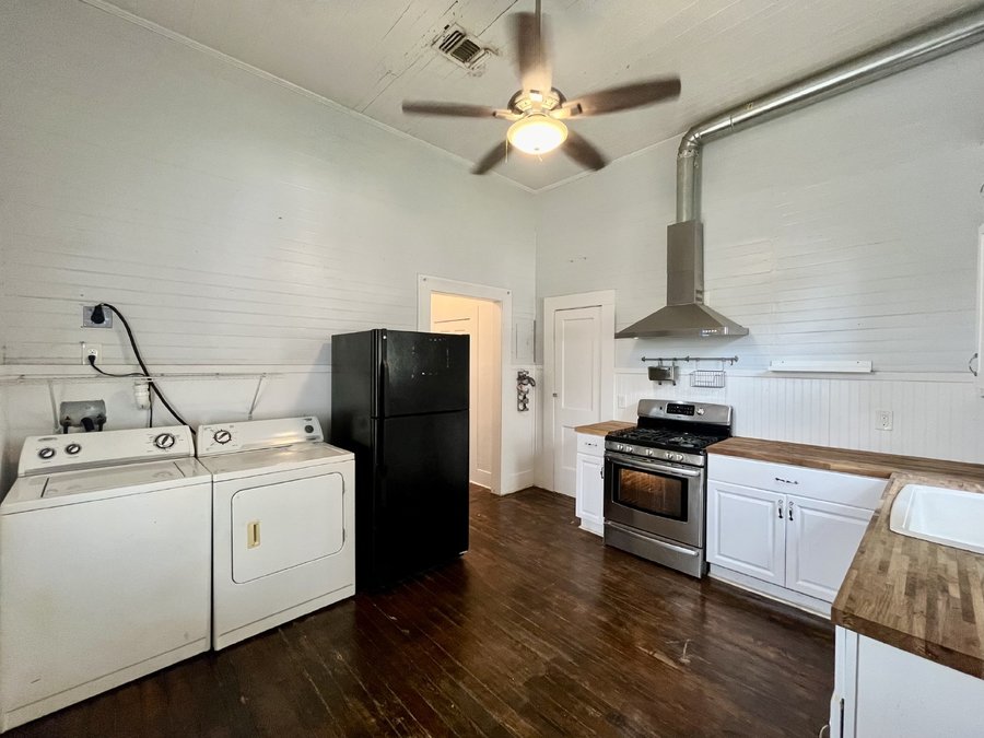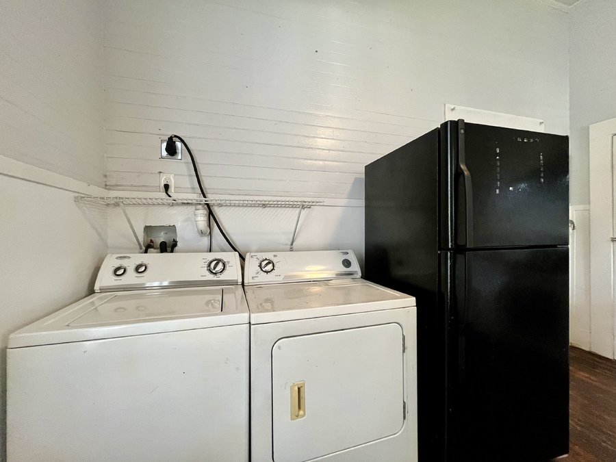 The main floor includes a comfortable living room and a separate dining room, perfect for entertaining. The well-equipped kitchen boasts a gas stove/range, refrigerator, and solid countertops. Conveniently, the laundry room is located in the kitchen and comes with a washer and dryer for your convenience.