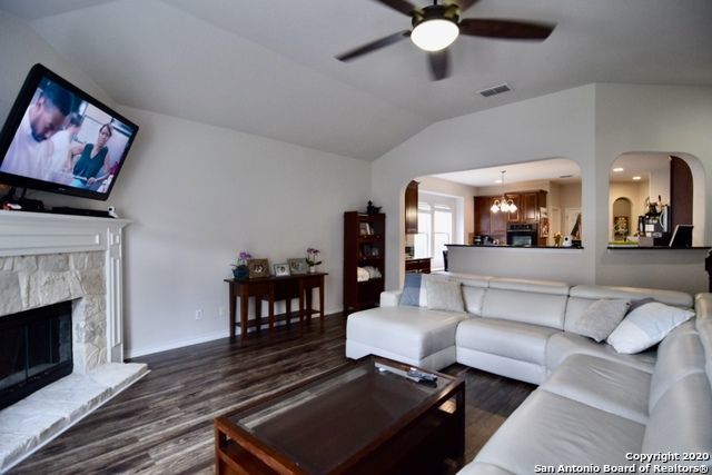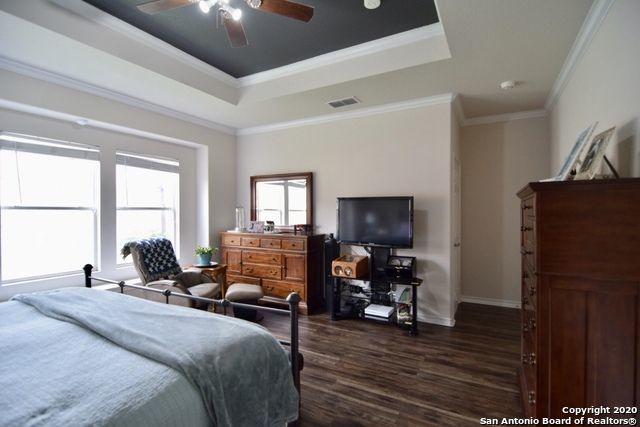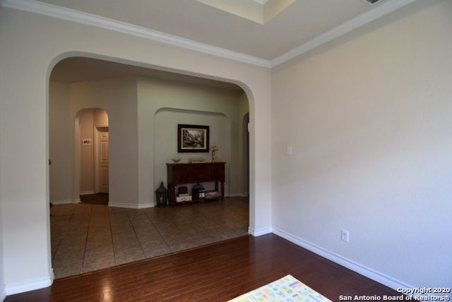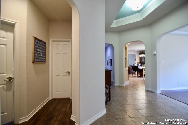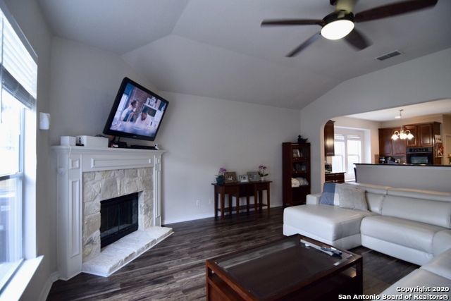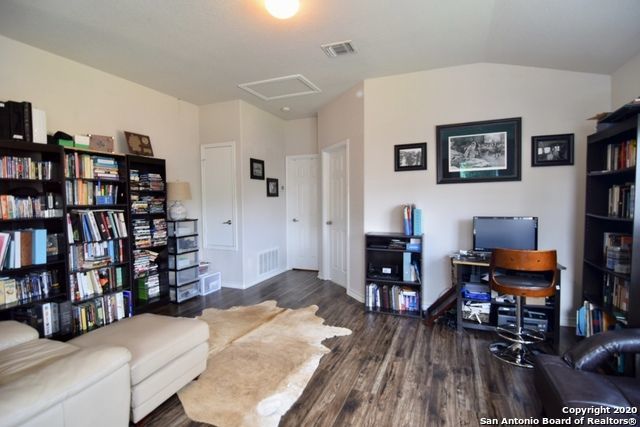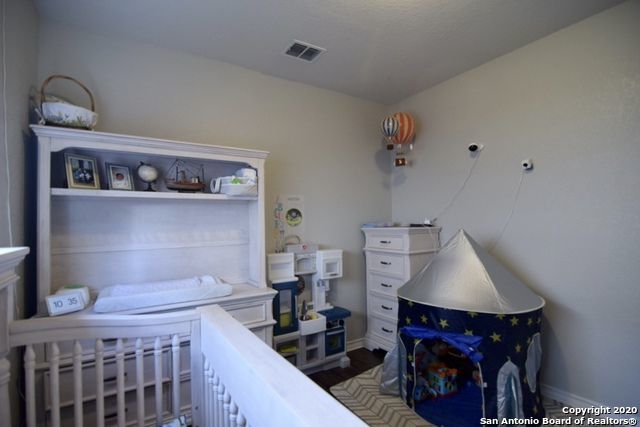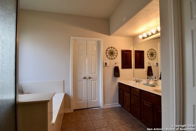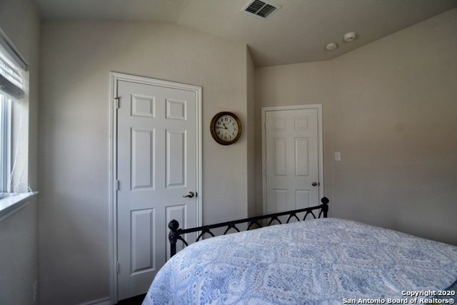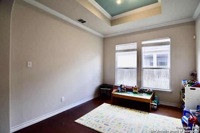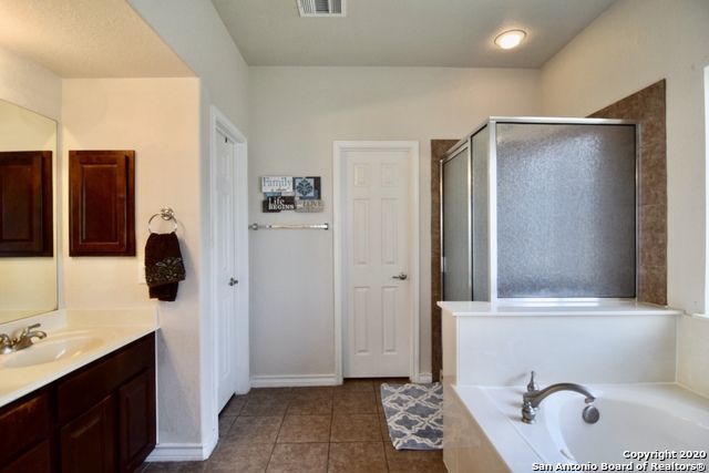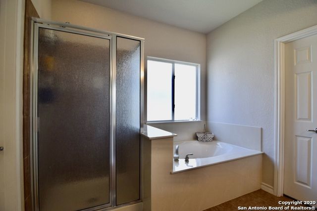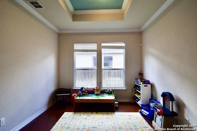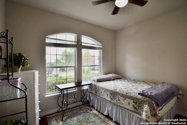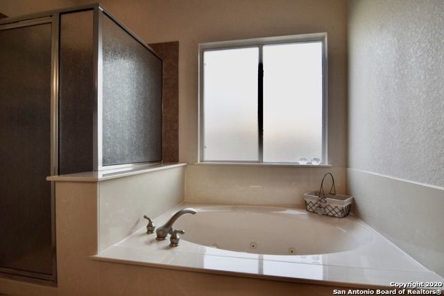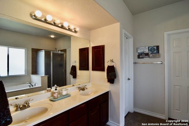 Retreat to the primary suite, where high ceilings create an airy feel. The ensuite bathroom includes a double vanity, garden tub, walk-in shower, and spacious walk-in closet for added convenience. Additional features include an alarm system, energy-efficient windows, low-flow commode, programmable HVAC system, and a water softener for enhanced comfort and efficiency. A separate laundry room with washer and dryer hookups adds practicality.