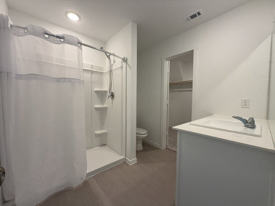 The primary bedroom provides a comfortable retreat with its own ensuite bathroom, complete with a walk-in closet, walk-in shower and single vanity. A dedicated laundry room with a washer and dryer adds everyday convenience.