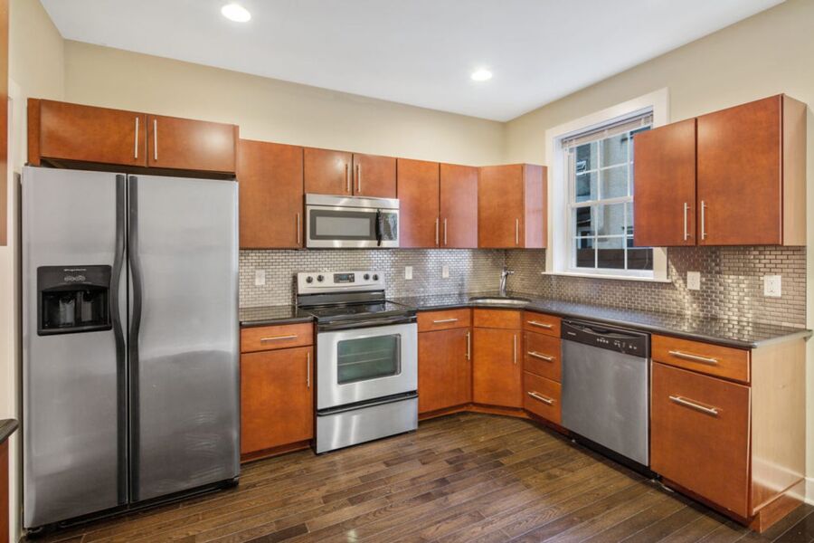 Luxury bi-level, 2 bedroom, 1.5 bathroom apartment throughout the first floor and basement level. The gorgeous interior features amenities including: central air, designer lighting, new washer/dryer, and hardwood floors. The property consists of a spacious, open living room with an adjacent powder room. A super modern gourmet kitchen furnished with stainless-steel appliances that include a dishwasher, refrigerator and microwave, in addition to sleek granite counter-tops and elegant designer cabinetry. Two beautifully painted spacious bedrooms with abundant closet space in both, a beautiful full bathroom with a modern stand up glass shower and truly exquisite tile.