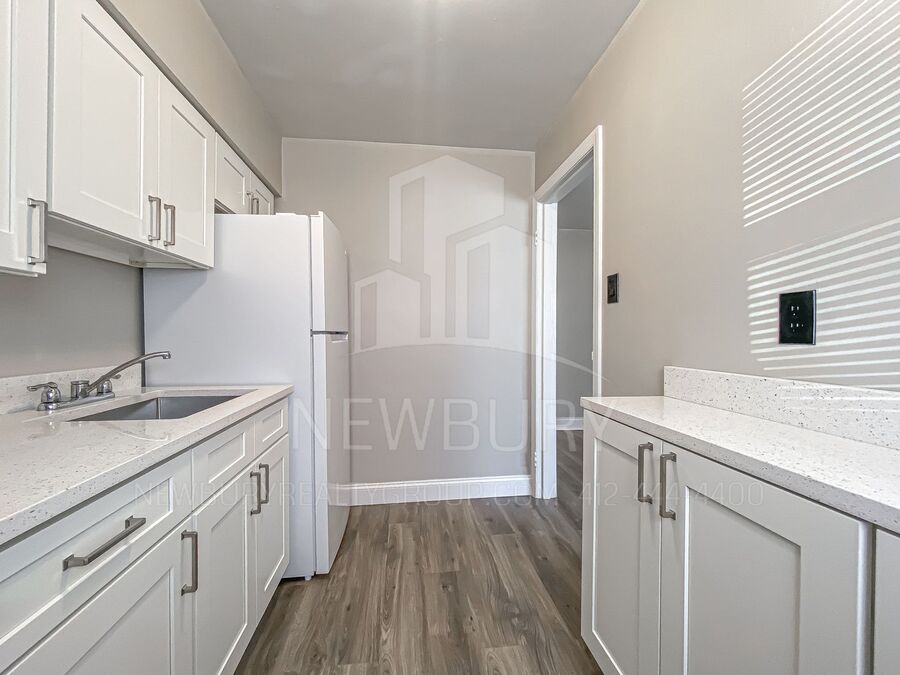 Fully Renovated Kitchen: Enjoy cooking in a contemporary galley-style kitchen featuring brand-new cabinets, a new refrigerator, quartz countertops, and stylish new flooring throughout.