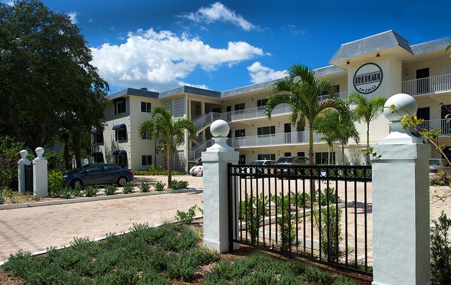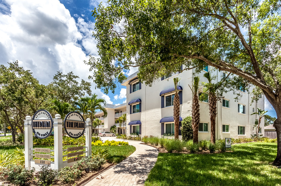 The Pearl On First offers elegant urban living in a small boutique garden apartment building. It is located in beautiful northeast St. Petersburg, with an only 10 minutes drive/20 min cycle to busy downtown Beach Drive. Walk one block to get your groceries or meet friends at the Northeast Park Shopping Center with many restaurants and stores including Publix and our new Whole Foods! The fabulous Pinellas Bike and Running Trail is just outside our door to downtown. Our apartments offer modern open plan living and dining areas, with beautiful granite counter tops and a washer/dryer right in the unit. The building is made of block so sound proof throughout. For our tenants we provide these amenities: the Pearl Common Room complete with Art-Deco Coffee Bar and Movie area, gorgeous private Patio with Martini Pool and al-fresco dining area, a 24/7 Fitness Room, and lovingly maintained grounds and trees around the property. The Pearl on First is a smoke-free environment. Check out our website at www.thepearlonfirst.com