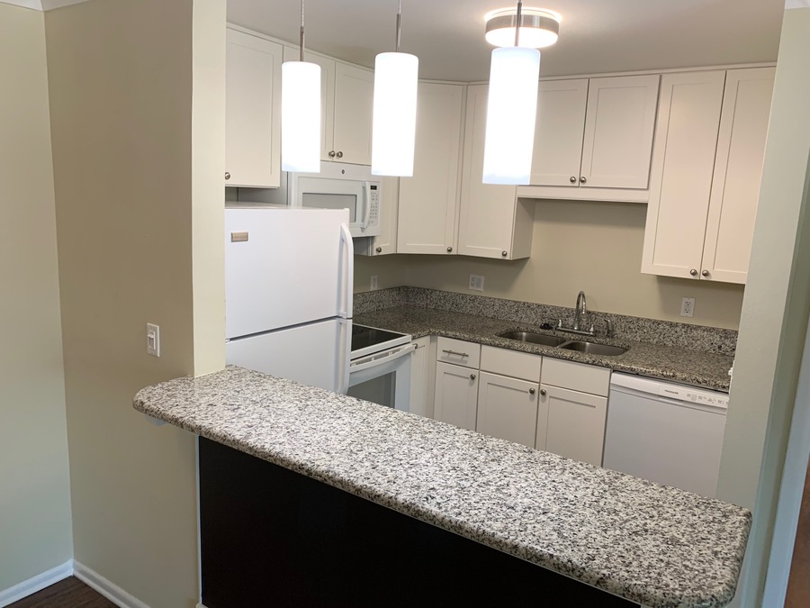 Open kitchen plans, custom 2-toned kitchen cabinets with granite counters