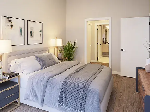 1st bedroom is 10'x11', fits a king bed, has a walk-in closet, has a master bath
