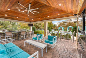 Resort Style Pool with Sunning Ledge, Cabanas and Expansive Deck with Gas Grills