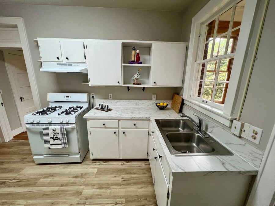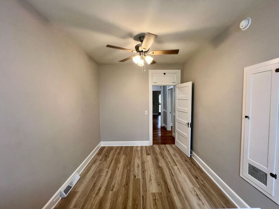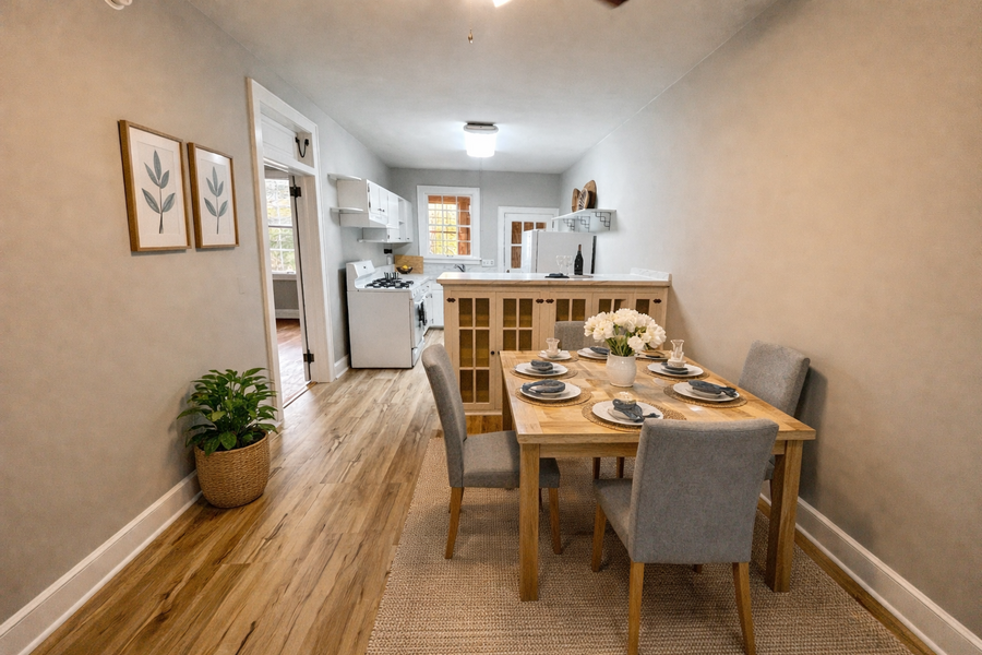 This three-bedroom, two-bath home features beautifully refinished hardwood floors, custom built-in bookshelves, and beautiful and inviting eat-in kitchen complete with a gas stove, brand-new LVP flooring, and stylish new countertops and hardware. A private office alcove provides an ideal space for working from home. The expansive 525-square-foot upper level is a true retreat, showcasing original heart pine flooring and a dedicated bath that is perfect as a luxurious primary suite, media lounge, or secluded home office. Fresh interior paint enhances the home’s timeless character and abundant natural light throughout.”