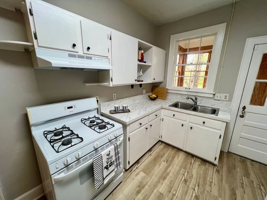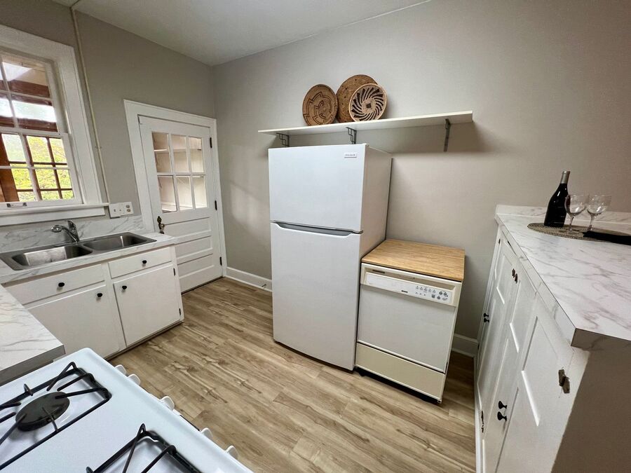 Unit includes hardwood floors, portable dishwasher, gas stove, fenced yard, and washer/dryer.
