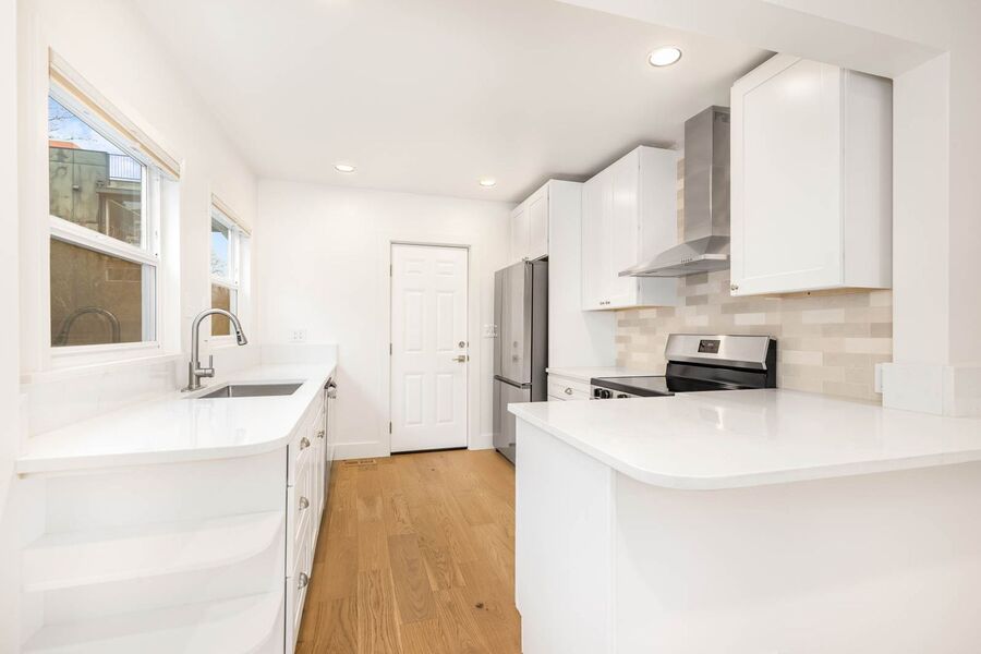 This standalone Craftsman-style home is located in the Madrona neighborhood and offers true one-level living with no shared walls. The interior features engineered hardwood flooring, tall ceilings, and a bright, open layout that allows natural light to move easily throughout the space. The kitchen is equipped with soft-close cabinetry, quartz countertops, and new stainless steel appliances, providing both functionality and updated finishes.