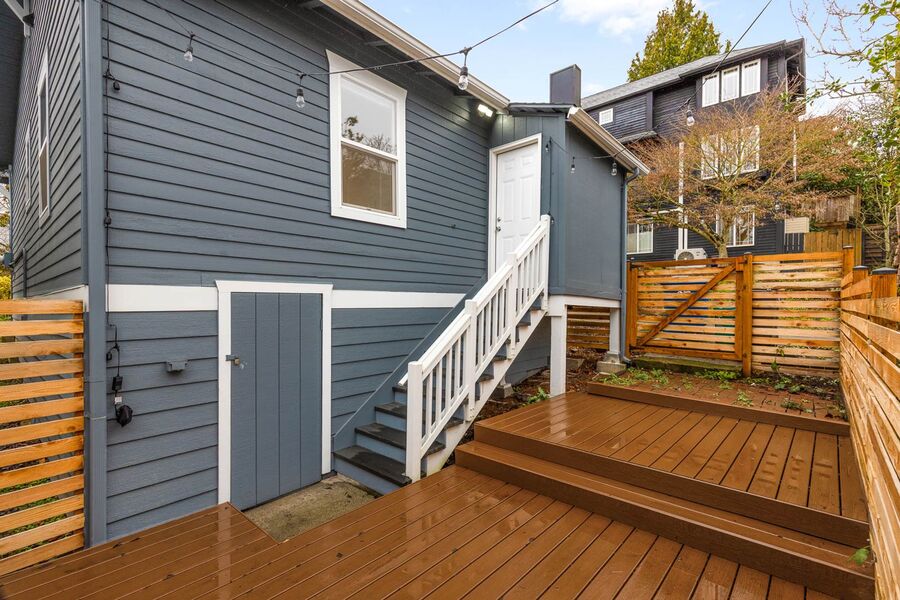 The property is situated on a residential street with ample street parking and is located near neighborhood shops, dining options, and local amenities. This home combines a functional layout, private outdoor space, and a convenient location within an established Seattle neighborhood.