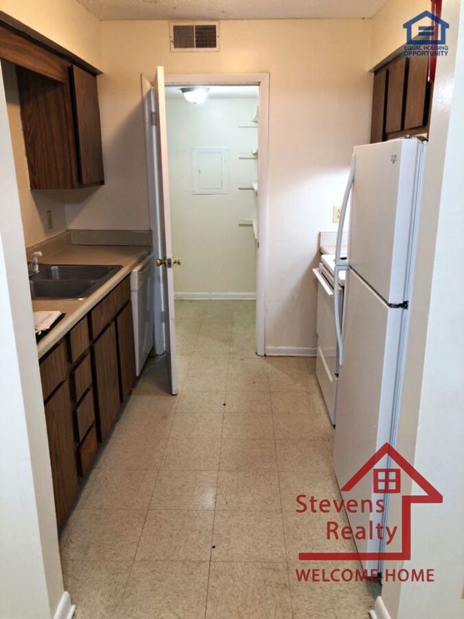 Experience comfortable living in our 2-bedroom 2-bath brick apartment with cozy interiors and abundant natural light from the double glass door that opens to a balcony with lovely views of the outdoors. The functional galley kitchen is well-equipped with lovely wooden cabinets and a spacious pantry with a washer and dryer connection. The bedrooms invite relaxation with ample closet space, with a primary bedroom ensuite. With the modern conveniences of a smart home system and central heating and air, ensure optimal temperature control, energy efficiency, anda healthy living environment. Pets are welcome at 30 lbs max. Located in a quiet and peaceful tree-lined neighborhood just right outside of town and a very short drive to the city center for all the things you need.