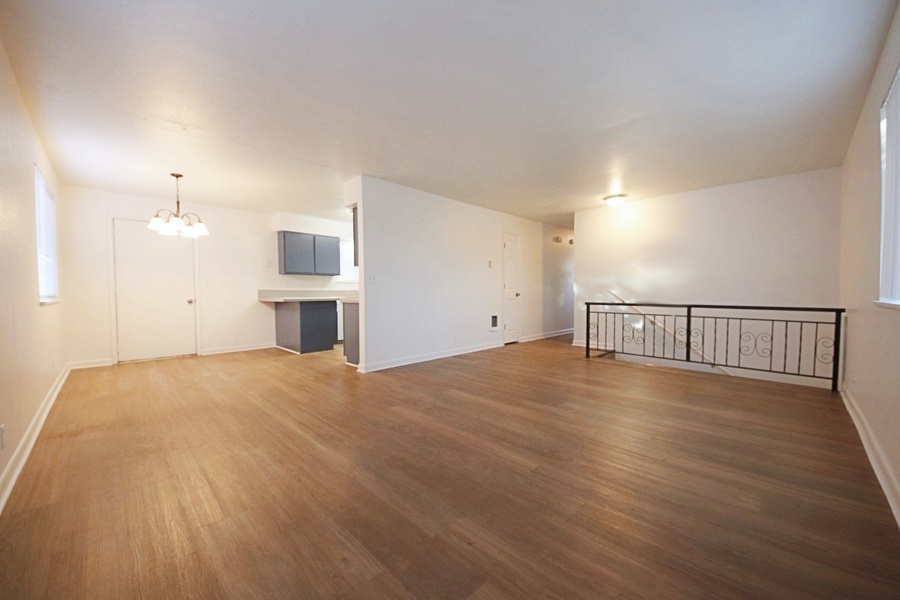 Spacious Upstairs Apartment with Garage & Large Fenced Yard! This classic 3 bedroom 1 bathroom apartment offers space, charm, and great outdoor features. Inside, you'll love the new renovations including updated and durable luxury vinyal plank (LVP) flooring and a fresh complimentary toned paint throughout the home. You'll find both a living room and dining area, giving you flexible living space. The kitchen comes equipped with all the necessary appliances including a refrigerator, stove, oven, and dishwasher. Each bedroom features a window for natural light and an ample-sized closet for convenient storage. Additionally, you'll enjoy the convenience of in-unit washer and dryer hookups and a single-car garage for year-round vehicle protection. Outside, you'll enjoy a large fully fenced backyard as well as a spacious deck ideal for summer evenings. Schedule your showings today!