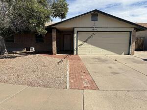 .Front and Backyard desert landscaping with auto-watering system. Backyard with has patio