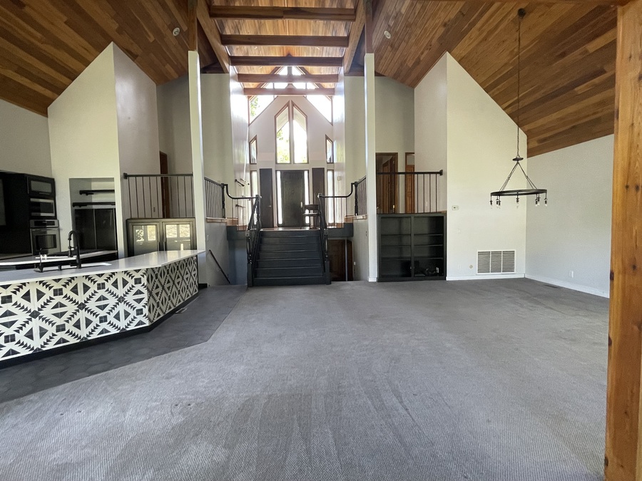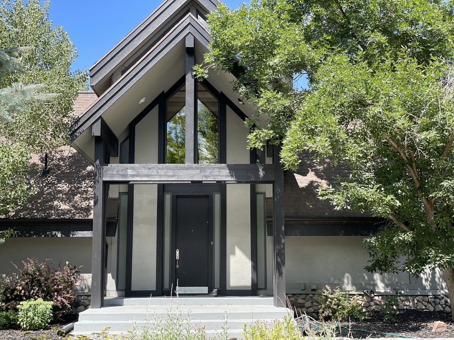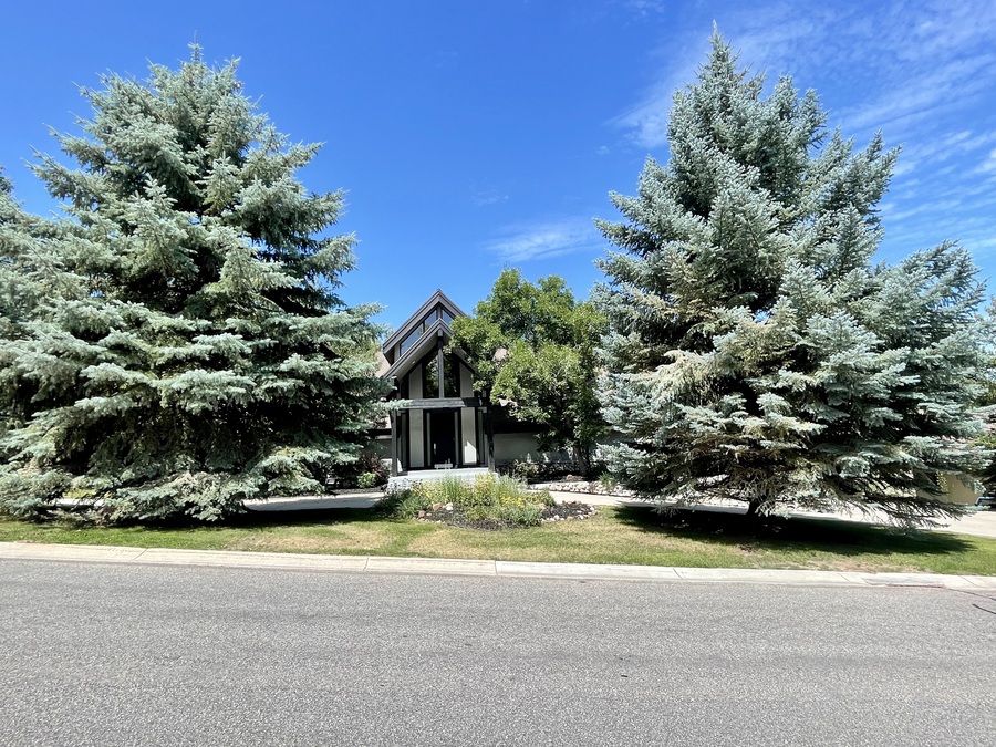Inside you will find an open floor plan with beautiful views of the mountains from the high ceilings and expansive windows. Off the back of the home is a large walk out deck where you can sit and view the gorgeous scenery or barbecue. The main level of the home has 2 bedrooms, 1 full bathroom, and a primary bed/bathroom with large walk-in closet. The basement includes another large ensuite bedroom, a bathroom, and a bar with an entertainment room with a walk out to the backyard.