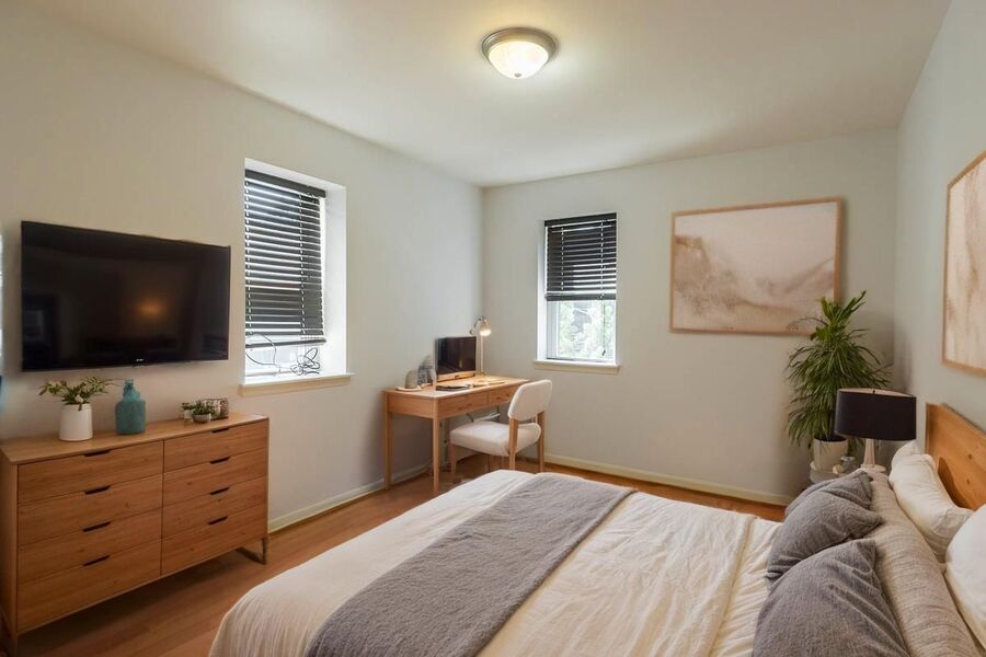 Open living and dining space with large windows and beautiful hardwood floors. Tall ceilings with recessed lighting, and lots of natural light. Fantastic kitchen with lots of counter space, stainless-steel appliances, and great cabinet storage. Spacious bedroom with the same lovely floors and excellent closet space.