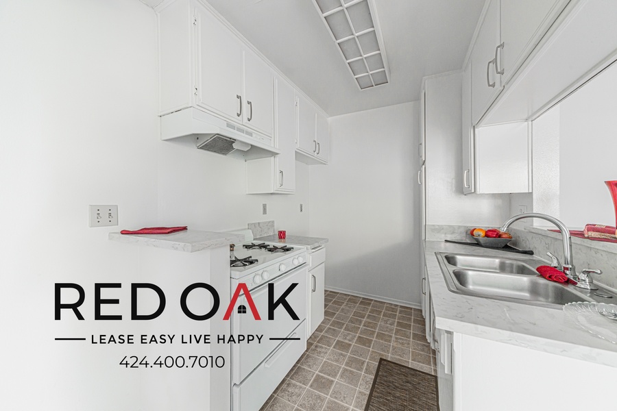• Full Kitchen: Range, refrigerator, and ample cabinet space.