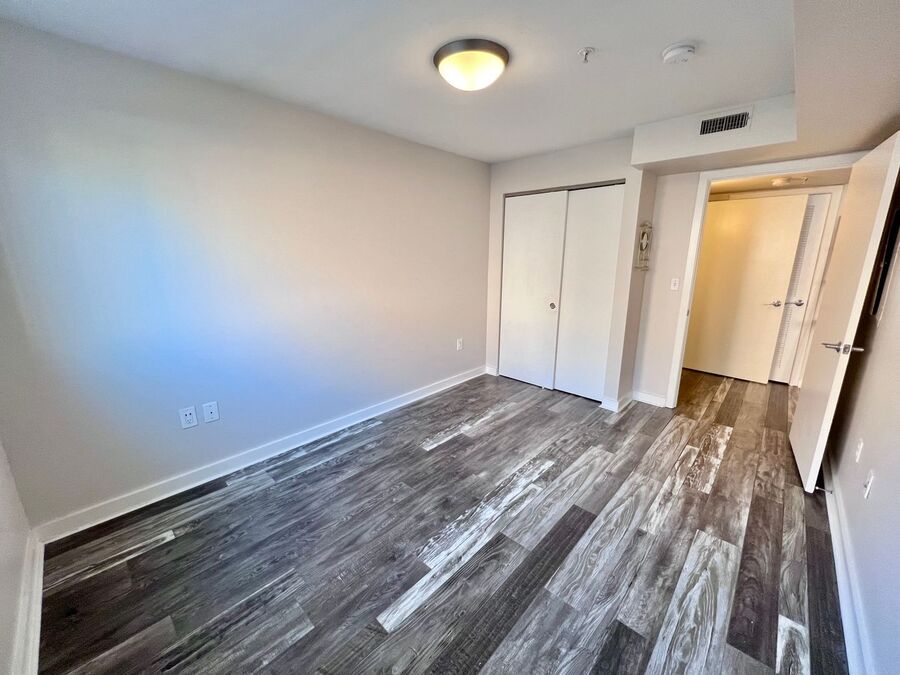 Spacious bedroom with ample closet space, plus a full bathroom in the hallway