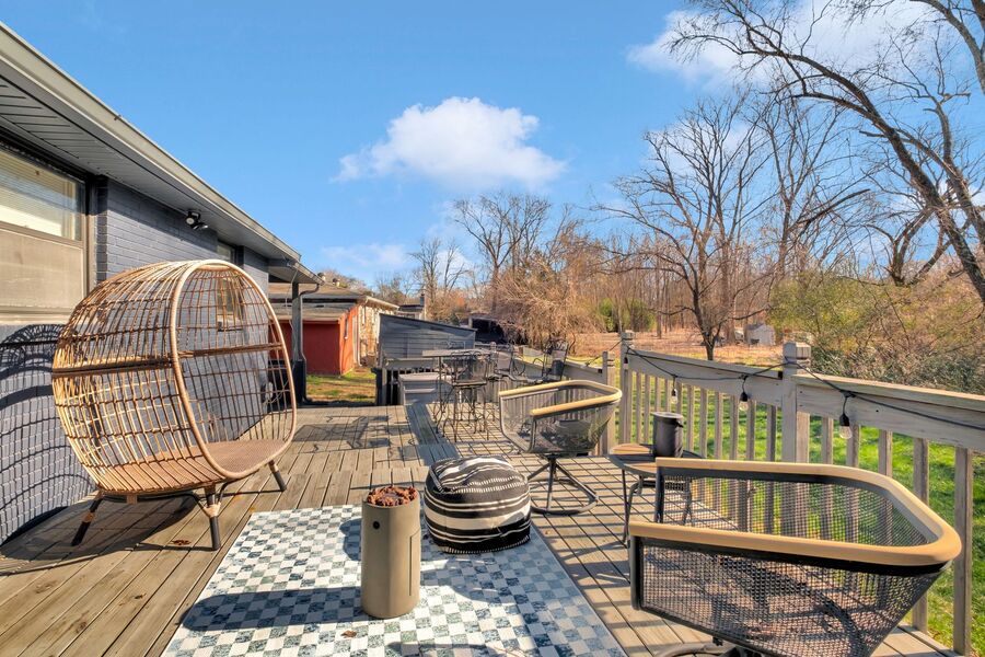 Available March 1st. You could live in this beautifully appointed mid-mod rancher! 12 month lease or owner would consider up to 16 month lease. Home has 1,545 sq ft with 3BR and 2BA. We love the sun drenched living room, modern fixtures and the eat-in kitchen plus an extra sunken den plus formal living room. Separate laundry room, both bathrooms were renovated in the last 2 years with modern tiled showers, raised vanities, and glass shower door. Private deck off 3rd bedroom that overlooks beautiful wooded lot. Kitchen has all stainless steel appliances..dishwasher, stove/oven and refrigerator with ice and water. Live just minutes from BNA airport and 10 miles from downtown. Pet friendly (cats and dogs ok!) up to two (2) pets. Tenant pays for electricity and water and cares for the lawn. Applicant must pay $70 for a credit, background and income verification. Professionally managed. 24 hour notice to show the property, property is currently occupied.