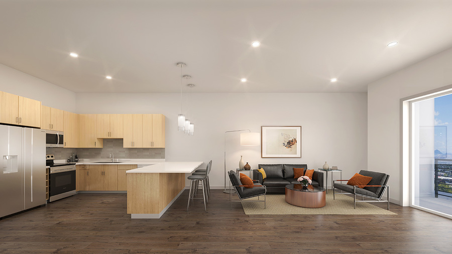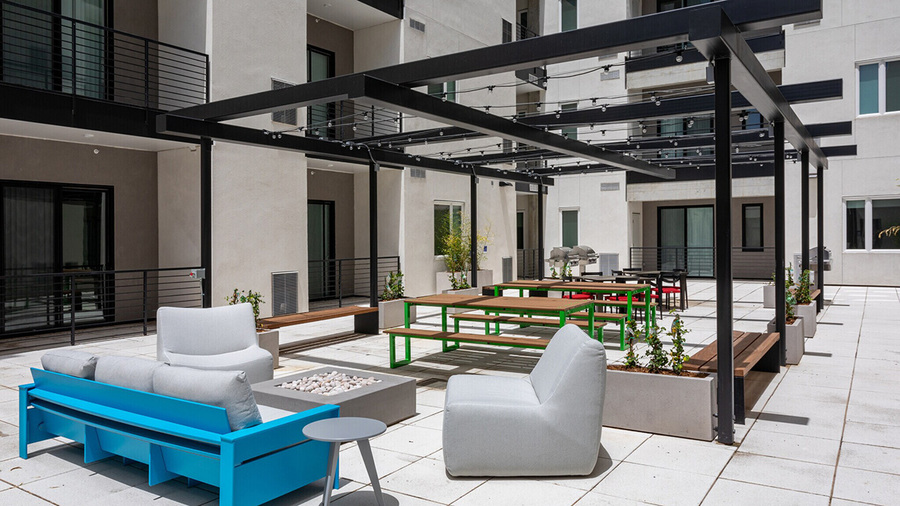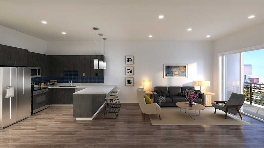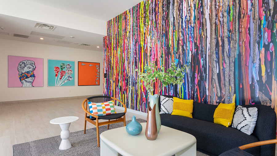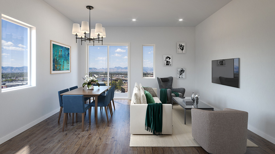 Welcome to your new home at POP DENVER, perfectly situated in the epicenter of creative inspiration — the Art District on Santa Fe. POP DENVER offers modern studio, 1-bedroom, 2-bedroom and 2-bedroom + den layouts, many with views of the mountains and/or downtown Denver. Full kitchens, high ceilings, and plenty of light are perfect for living, working and entertaining. Take a break in the private courtyard, get cozy around the fire pit, and BBQ with your friends. When it’s time for a workout, your fitness center offers a bit of everything with state-of-the-art equipment.