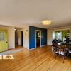 The main floor features a cozy living room with a fireplace, a formal dining area, two bedrooms, and a full bathroom. The kitchen flows nicely into the dining space, perfect for entertaining or quiet nights in.