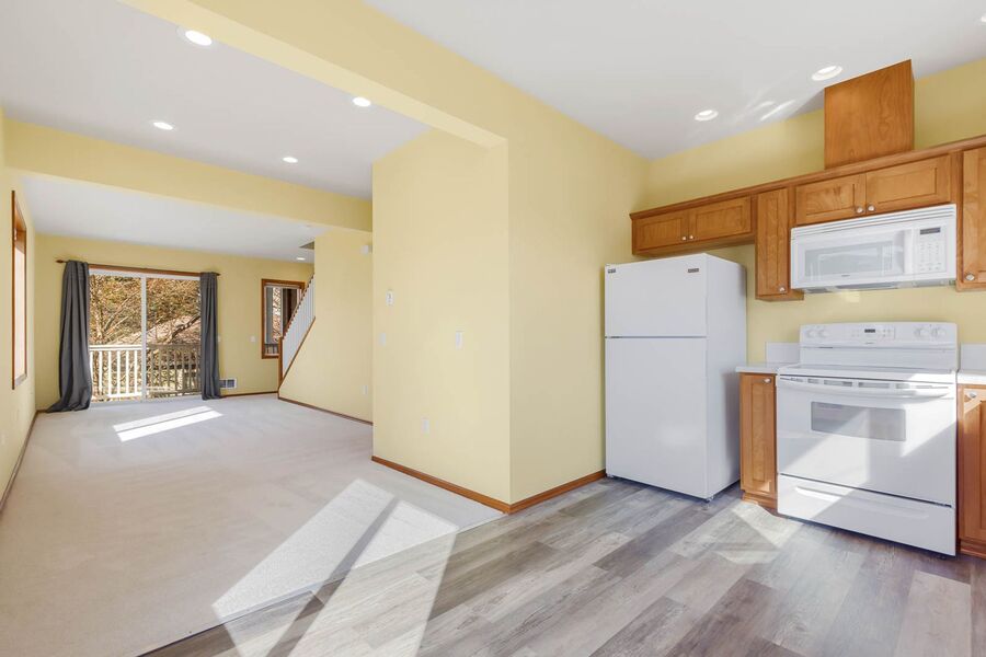 Upon entry, the first level features a private bedroom with its own en-suite bathroom—ideal for guests, a home office, or multi-generational living. The main floor offers a bright, open-concept layout designed for comfortable living and easy entertaining. This level features a spacious living and dining area along with access to a private deck, perfect for morning coffee or relaxing in the afternoon.