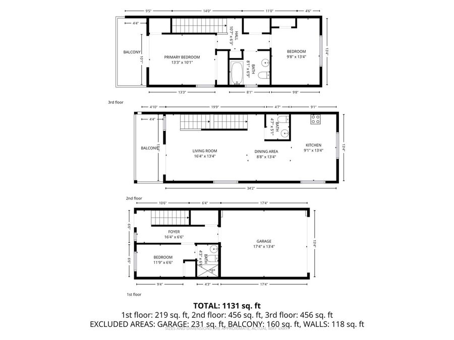 The top floor includes two additional bedrooms and a full bathroom, providing a light-filled yet private living space.