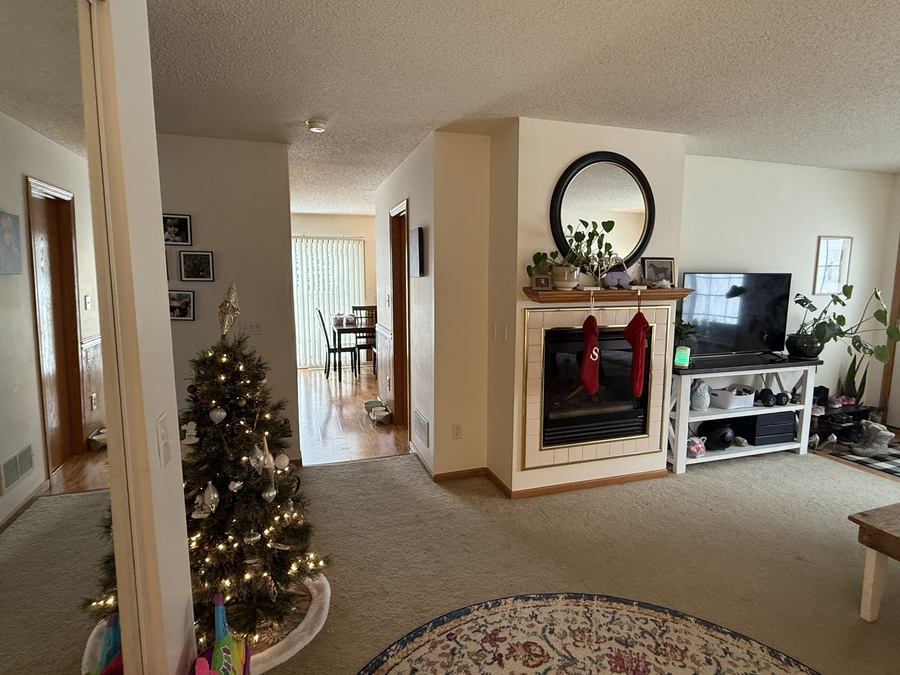 Available February 1, 2026. A new listing brought to you by The Feland Real Estate Group and Bridge Realty. This cozy end unit townhome is on a quiet street in a great location and includes a private outdoor patio space. Walk in to a living and dining area complete with a large window and a gas fireplace. The kitchen is a good size with newer appliances, lots of cabinet and counter space and access to a half bath and the attached garage. Both bedrooms are upstairs in addition to the laundry machines and a full bathroom. Sorry, no pets please. Tenant is responsible gas, electric and water/sewer plus cable and phone. Please note: Everyone over 18 must apply. There is a $50 per-adult application fee plus a one-time $199 lease admin fee. Damage deposit equal to one month's rent or possibly up to 2 months rent depending on credit and other factors. Applications and in-person tour signups are available above. General rental requirements include: excellent credit, gross monthly income of 3 times the rent plus perfect background and rental history.