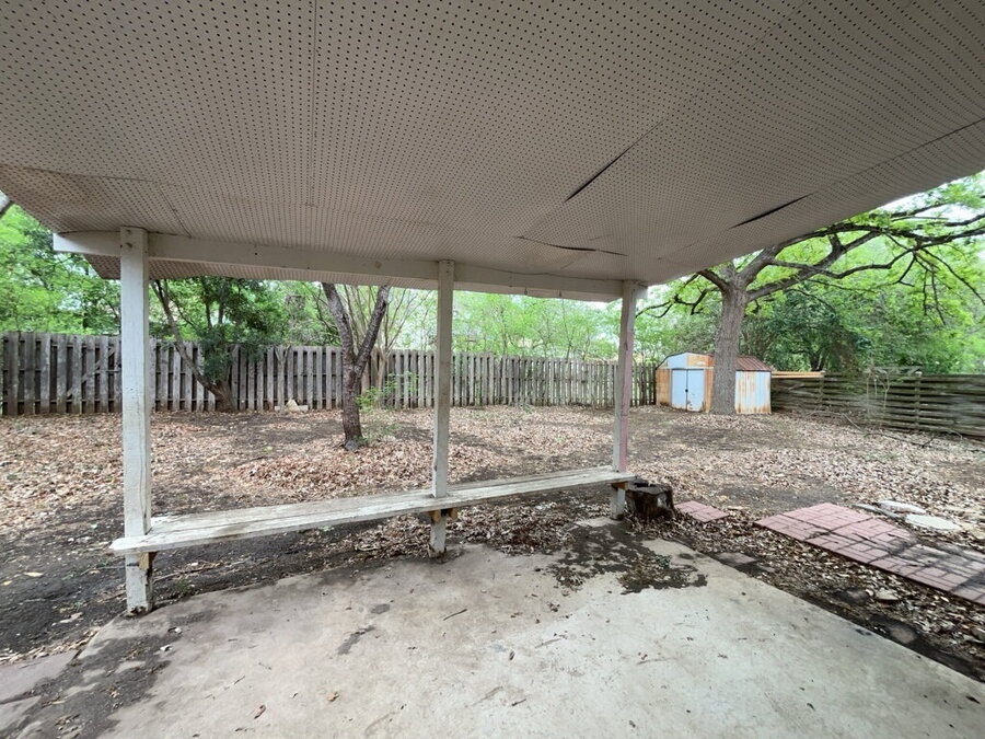 Outside, the backyard creates a peaceful setting with a covered patio, mature trees, gutters, a privacy fence and a storage building/shed for extra space. A two-car garage provides secure parking and additional storage. Located in a community near shopping, this home offers easy access to everyday conveniences while still providing a comfortable place to call home. This charming property combines functional living spaces with inviting outdoor areas, ready for its next residents to enjoy.